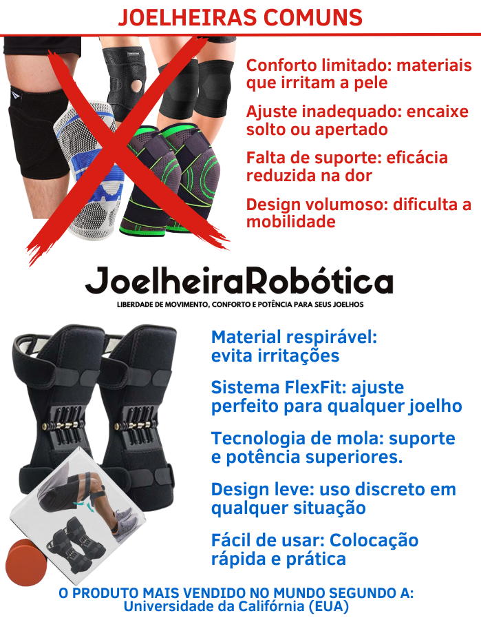 Não deixe a dor limitar sua vida! A Joelheira Robótica oferece o suporte que você precisa para se mover com confiança. Oferta limitada: adquira a sua agora e sinta a diferença!